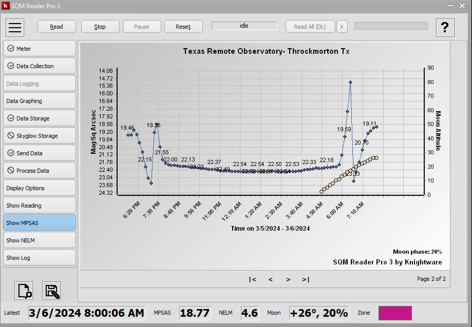 The observatory typically reports 21.75 and greater MPSAS during evening sessions.