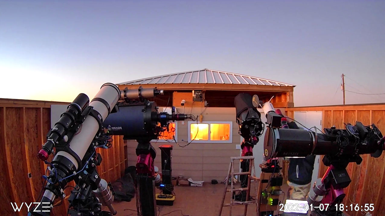 TRO is located near Throckmorton Texas on the historical and rustic SMS-Swenson family ranch. The observatory has been in operation continuously since 2020 and currently hosts 6 remote imaging telescopes in its primary observatory. The main building was constructed by Backyard observatories and includes a warm room for observatory control systems.